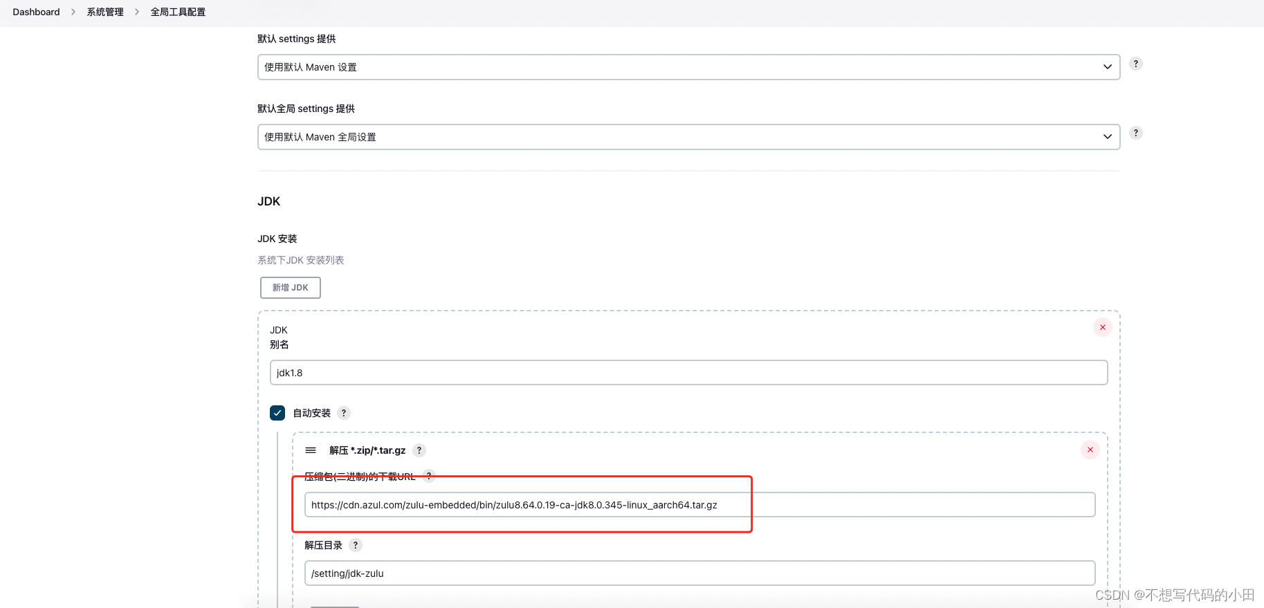 以上就是阳光期待最近收集整理的关于docker jenkins 安装arm jdk环境版本:cpu架构:arrch64 (华为鲲鹏)jenkins/jenkins:ltsJenkins 2.361.2推荐 zulu-openjdk 地址 azul.com 下载页面的全部内容,更多相关docker内容请搜索靠谱客的其他文章。