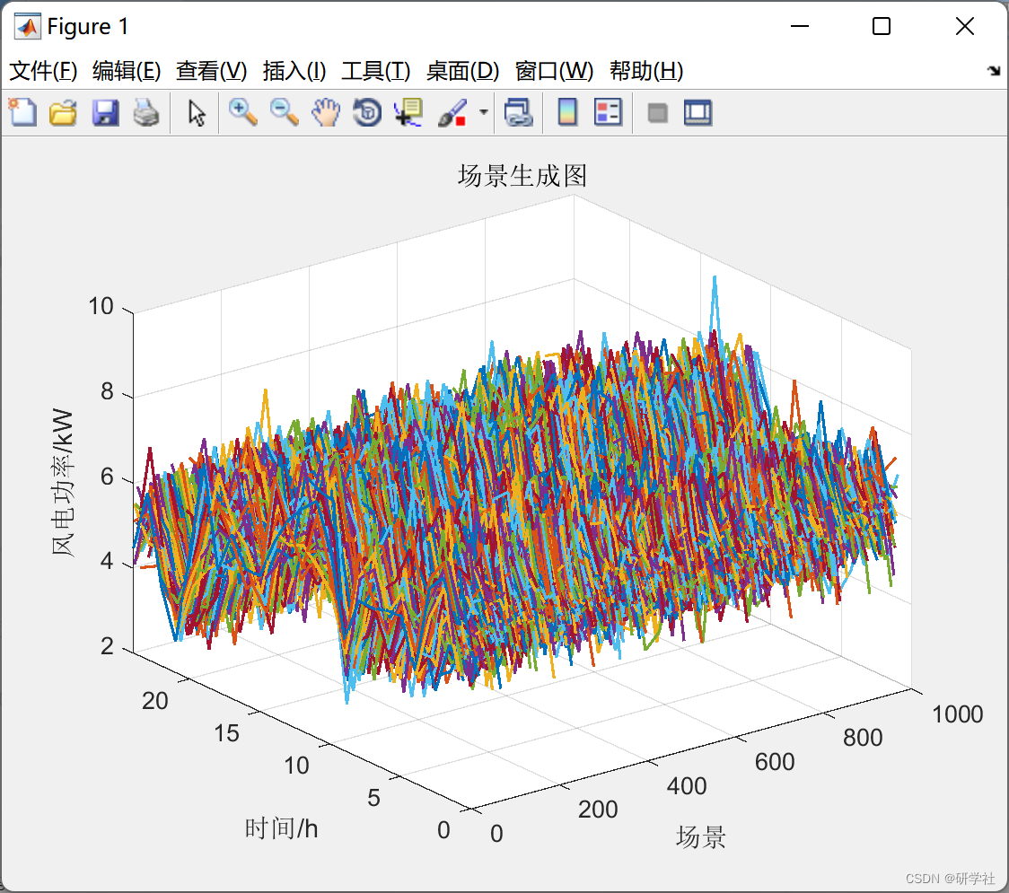 以风电和光伏为代表的可再生能源出力具有随机性、间歇性、波动性等特点,在未来高比例可再生能源电力系统中,其大规模并网将给电网的安全、稳定运行带来挑战。为了研究高比例可再生能源背景下电力系统规划、运行、调度等优化问题,首先需要精准刻画风电、光伏出力的随机性与波动性特征,并且解决大规模时序数据对优化程序所造成时间复杂度较高的问题,因此需要对风电、光伏出力场景进行削减以达到精简数据、减少计算量的目的。风电、光伏出力随着时间的变化呈现一定的季节或日周期性·。因此,可以对风、光出力进行场景分析,将出力的不确定性转化为确定性场景,为后续电力系统规划、运行、调度等优化问题提供数据基础。