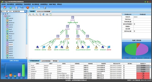 SugarNMS智和网络管理软件是以SNMP网管协议为基础,并综合了ICMP ping、ARP、CDP、LLDP、OSPF邻居路由、端口转发表、STP生成树协议等物理拓扑发现技术,发现设备的物理链接。智能分析网络拓扑结构,自动勾画出整个网络的真实物理拓扑图。