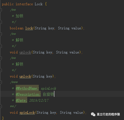 4,写锁的接口。加锁,解锁和自旋锁。所谓的自旋锁就是再未获得锁的时候循环直到获取锁为止。