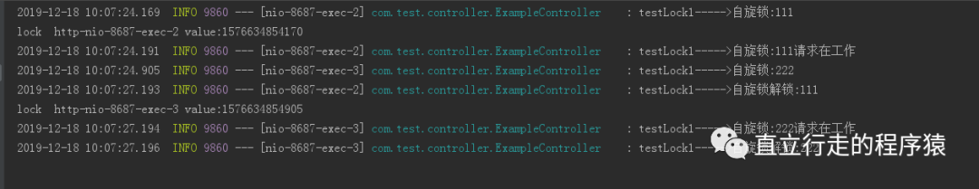 8,看日志输出结果,证明锁的存在。