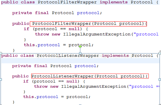 这是一种装饰模式的实现,在jdk的输入输出流实现中有很多这种设计,在于增强扩展点功能。这里我们拿对于Protocol接口的扩展点实现作为实例讲解。