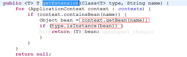 //利用dubbo服务查找机制根据名称找到具体的扩展点实现