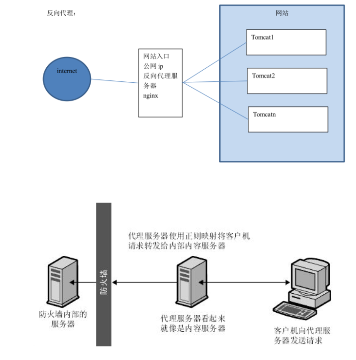 - 反向代理(Reverse Proxy)方式是指以代理服务器来接受internet上的连接请求,然后将请求转发给内部网络上的服务器,并将从服务器上得到的结果返回给internet上请求连接的客户端,此时代理服务器对外就表现为一个反向代理服务器。