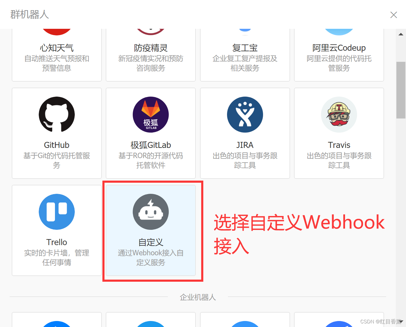 1.4.6、选择【自定义】通过Webhook接入自定义服务