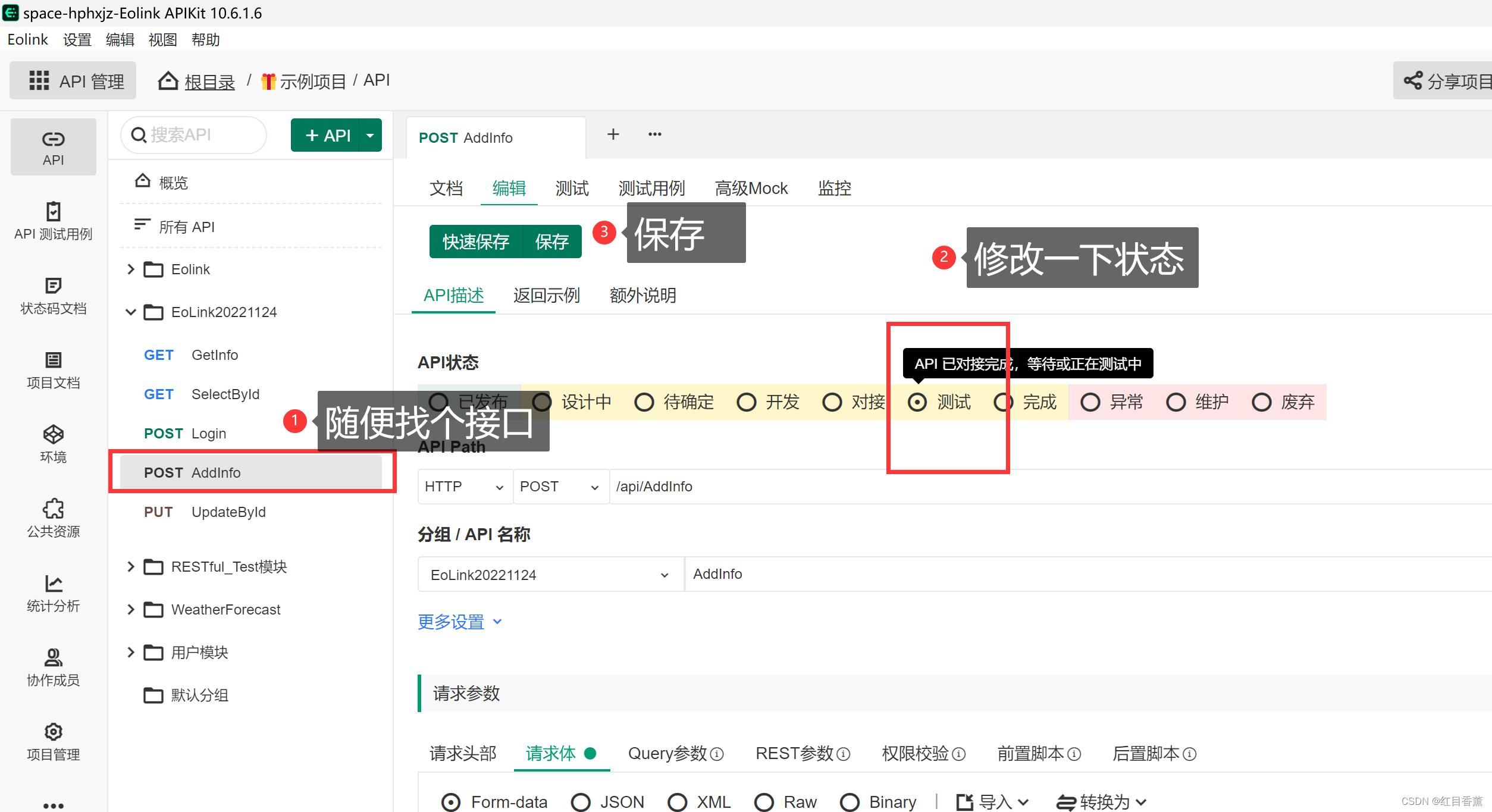 这里我通过Eolink的Webhook功能可以对接企业微信、蓝信、飞书等工具,此文以钉钉的Webhook对接为例。操作步骤相对来说是非常容易的,我主要分为了两大部分来讲解。