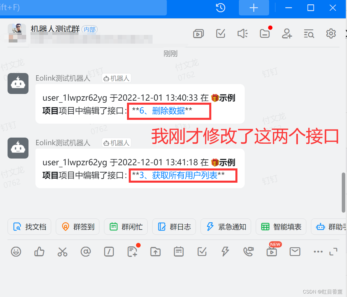 以上就是自由耳机最近收集整理的关于Eolink神技之三、钉钉API对接Eolink神技之三、钉钉API对接前言 一、操作步骤二、机器人消息测试: 三、总结的全部内容,更多相关Eolink神技之三、钉钉API对接Eolink神技之三、钉钉API对接前言 一、操作步骤二、机器人消息测试内容请搜索靠谱客的其他文章。