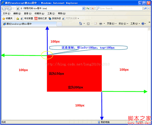 红色框的坐标是蓝色的上线100px,和绿色的左线100px,即left和top的值,这两个值不是算出来的吗?