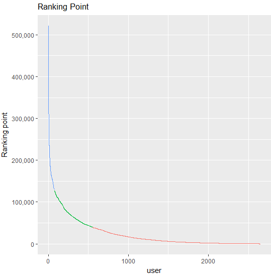 将用户根据参与次数分为三类,取前两类参与度较高的用户行为数据作为数据源