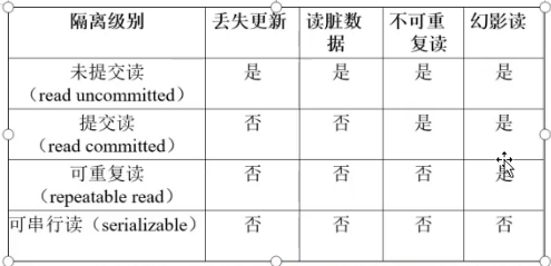 级别由高到低:SERIALIZABLE>REPEATABLE READ>READ COMMITED>READ UNCOMMITED