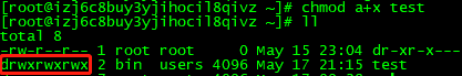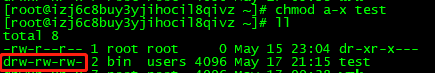 备注:执行权限(x),对目录而已就是其他用户能否cd test成为工作目录。