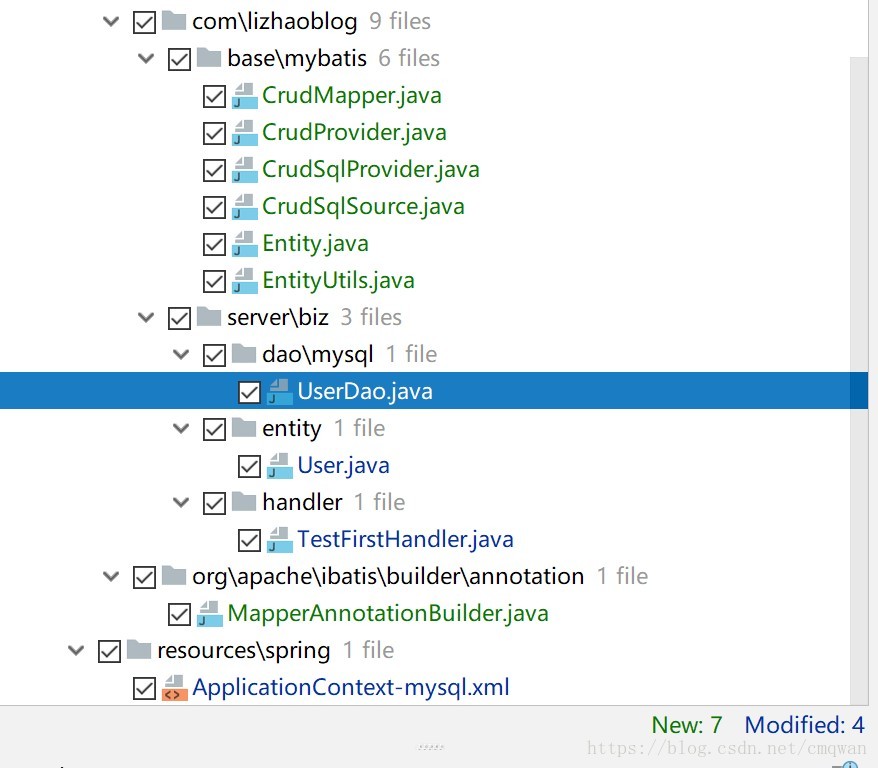 5.xml文件中添加实体类的基类<property name="typeAliasesSuperType" value="com.lizhaoblog.base.mybatis.Entity"></property>