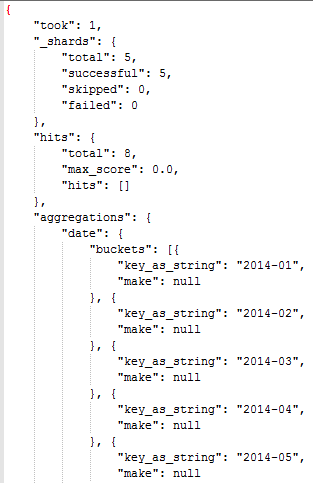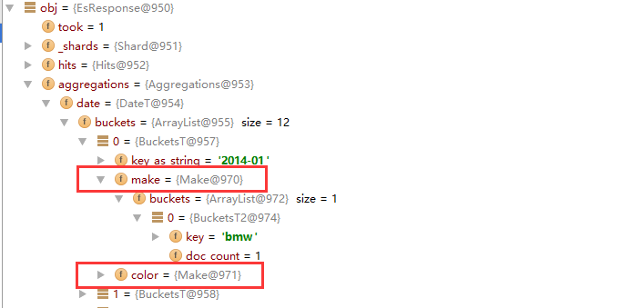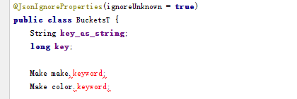 场景2:Elasticsearch查询返回的数据中针对key:value的数据格式较多,有时会发现 有些key会是:make.keyword,color.keyword这种,而反序列化模板要以key为属性名,如图: