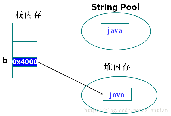 这种方法在创建字符串对像的同时,还会在String pool中创建一个对象。因此执行了上面语句后实际上创建了两个对象。