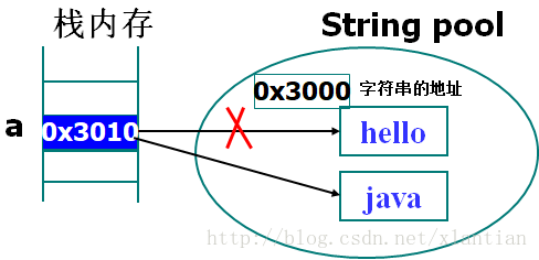 其实,a从hello变为java不是hello被改成了java,而是系统又创建了一个对象,内容为java,a只是从指向hello变为指向java而已。
