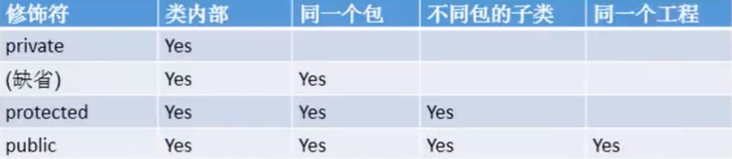 4.1 权限从小到大顺序为:private < 缺省 < protected < public