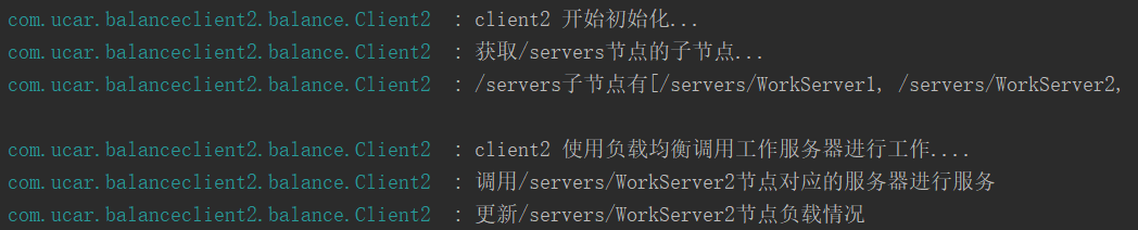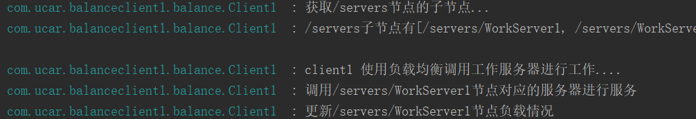 logger.info("client1 使用负载均衡调用工作服务器进行工作....");