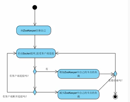- 服务端每次接收到客户端的连接,添加自己的负载,客户端断开与自己的连接则减少自己的负载