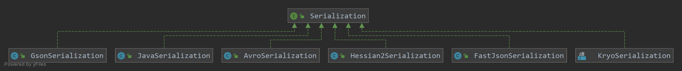 通过Serialization接口的实现类,我们可以看到Dubbo支持的序列化方式如下: