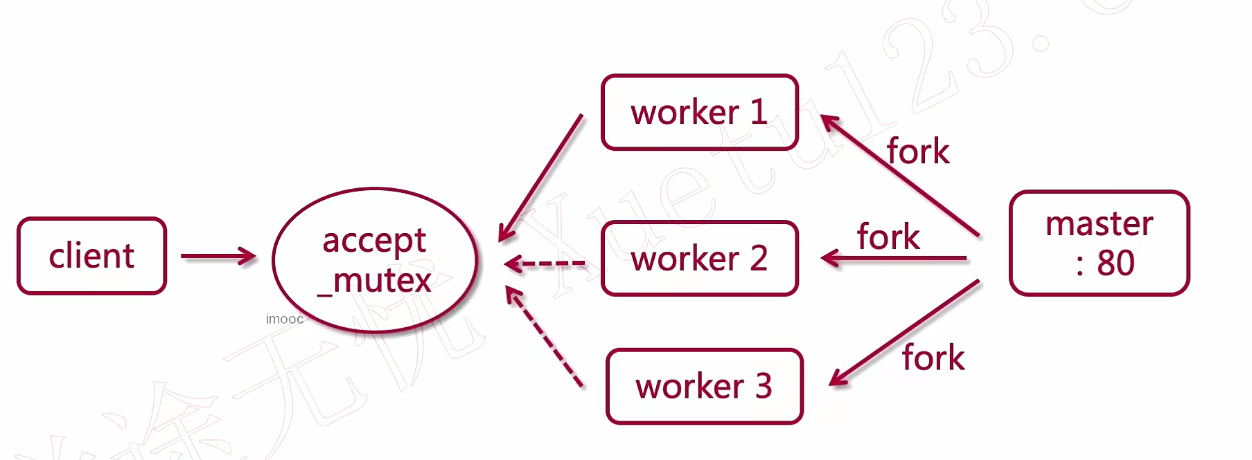 1)Worker抢占机制: 当一个master主进程监听到一个端口会,会产生一定数量的worker进程,这些worker会去accept锁中抢占客户端请求;