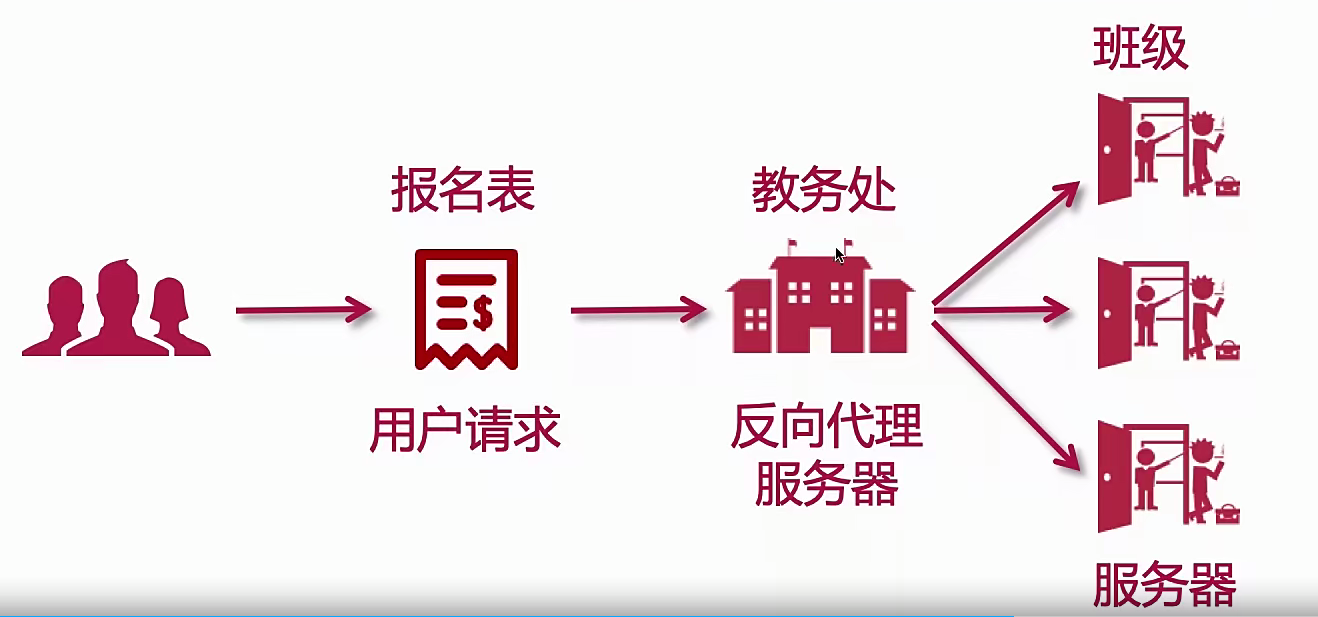 反向代理:用户请求目标服务器,由代理服务器决定访问哪个ip;