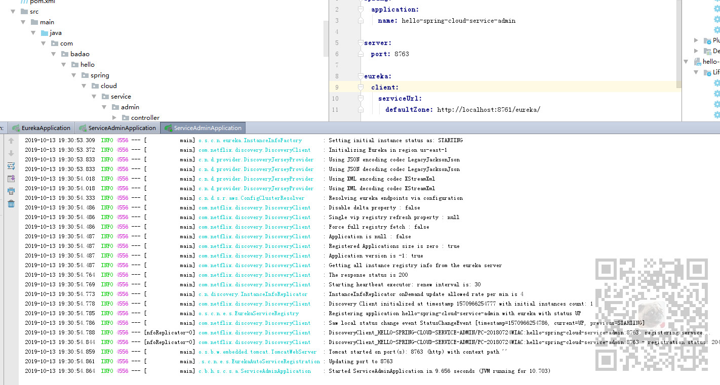 为了体现出负载均衡效果,我们要启动两台service-admin,即启动两个服务提供者。