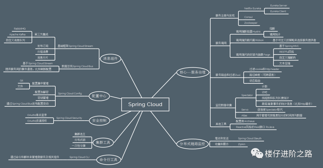 Spring Cloud 基于 Spring Boot,为微服务体系开发中的架构问题,提供了一整套的解决方案——服务注册与发现,服务消费,服务保护与熔断,网关,分布式调用追踪,分布式配置管理等。