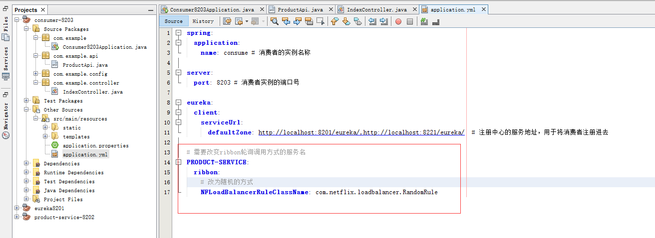 接下来改一下Ribbon的负载方式,改成随机的方式: