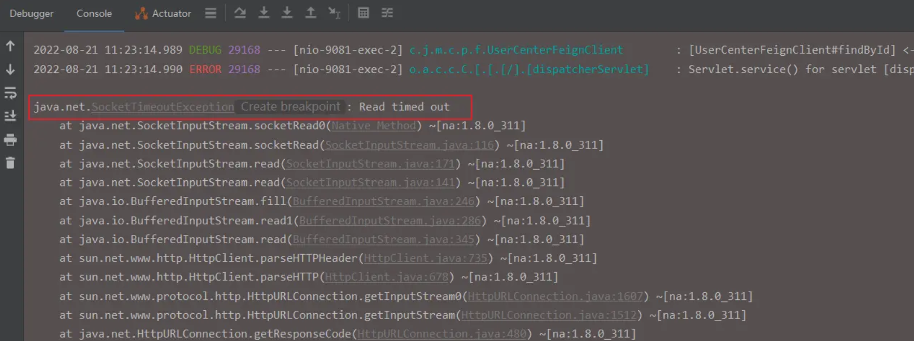 所以我们使用OpenFeign远程调用微服务接口响应时间超过1s时,就会出以下报错:
