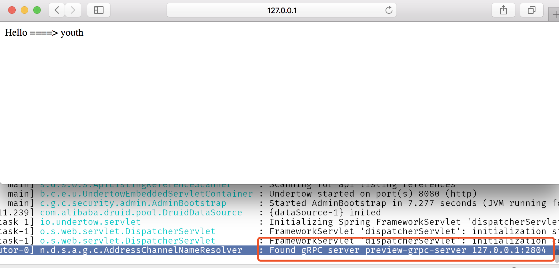 配置完成,这里需要特别说明一下:server模块和client模块的web服务各占一个端口,另外,server模块还会给grpc单独分配一个端口,就我的preview-grpc-server来说: