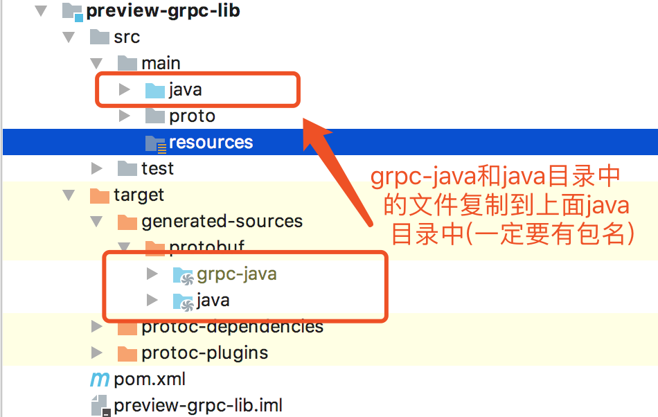<!-- 由于我的工程是多模块的,若不作为jar包引入,也可以将preview-grpc-lib中的java文件拷贝到当前工程内也可 -->