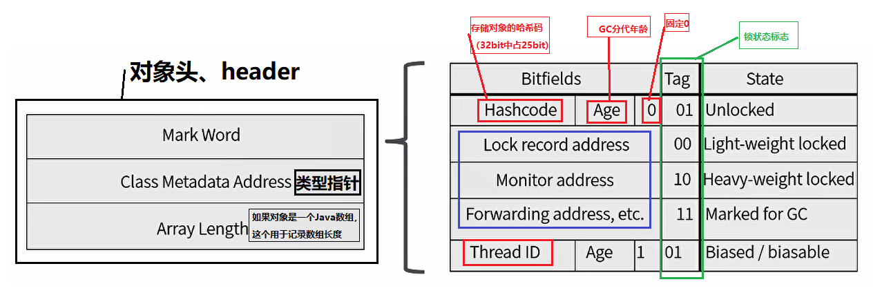 1、对象在堆内存中的存储布局划分为三个部分:对象头(header)、实例数据(instance data)、对齐填充(padding)