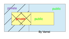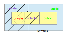 (衍生层的private成员有访问禁忌,所以标为斜线。基层的private成员访问禁忌最多,所以标为交叉斜线)