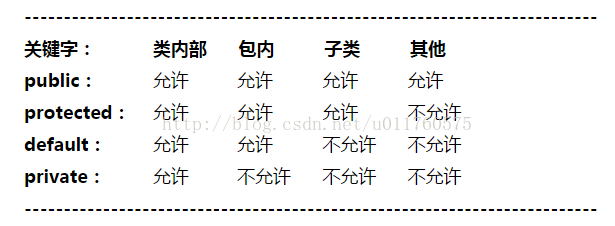 Java中用来描述访问权限的关键字包括:public,protected,private,其实还有一个没有隐形关键字“default”
