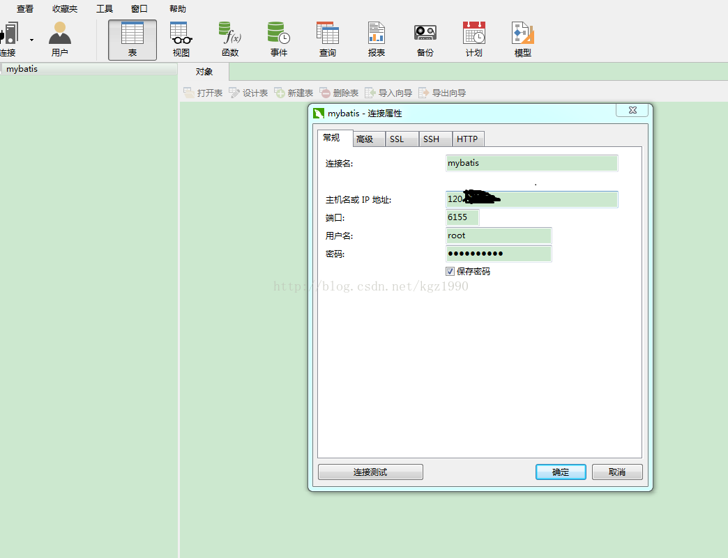 2:输入数据库所在服务器的ip地址,端口,用户名,密码。