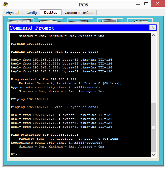 这个时候你用pc3去ping pc0会发现ping不通,pc4去ping pc0就可以ping通,pc0也可以ping通pc3和pc4