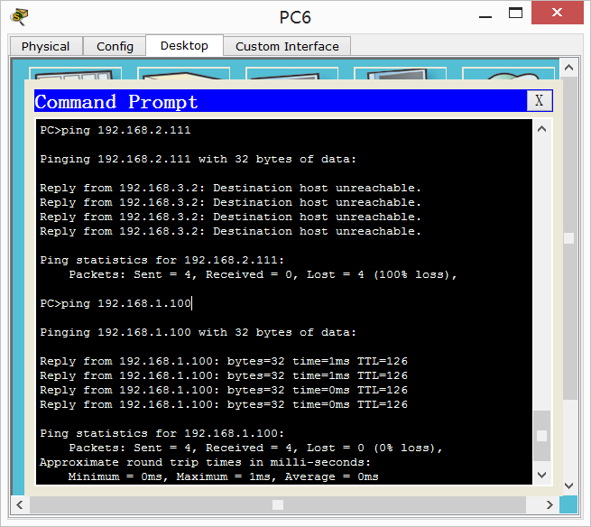 (这里显示用pc6去ping服务器ping不同却ping的通pc5,而pc5也ping的通pc6,所以ACL就设置成功了)