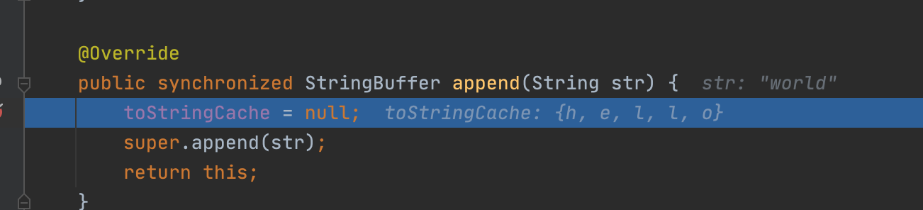 Cleared whenever the StringBuffer is modified.那我如果调用append,这个东西就会被清空,相当于上次调用toString的一个cache;