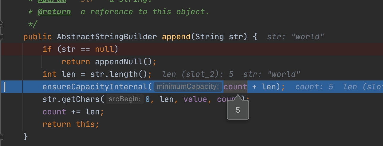 以上就是冷傲大地最近收集整理的关于[面试必备]StringBuffer的append 源码解析前言源码debug过程的全部内容,更多相关[面试必备]StringBuffer的append内容请搜索靠谱客的其他文章。