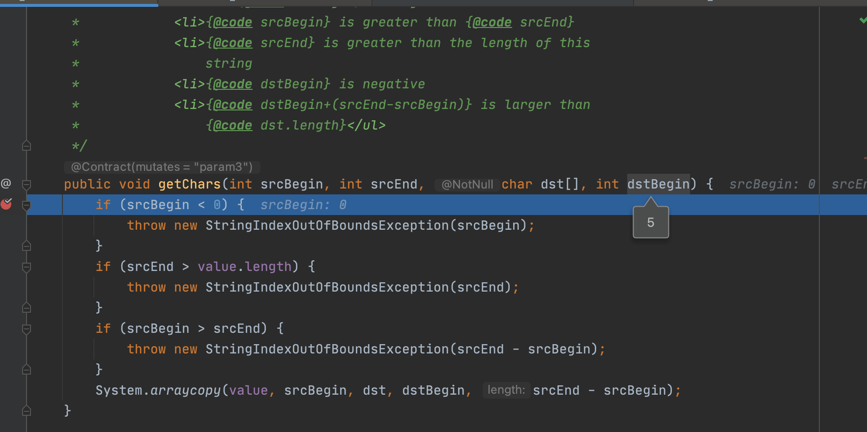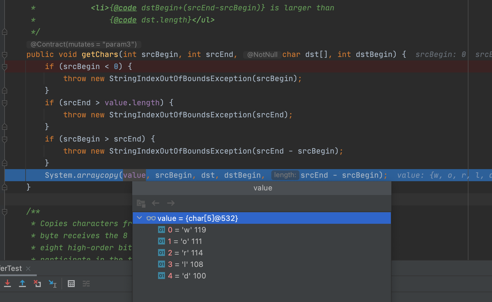 getChars 就是传入,原始字符串的开始和结束,然后还有扩充完的字符数组(也许不用扩充),然后新的要从哪里开始