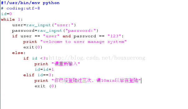 print "你已经登陆过三次,请10min以后在登陆"