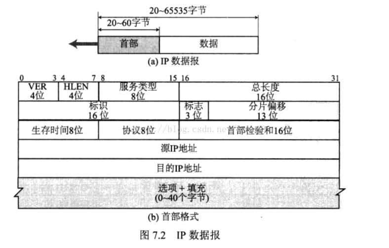 数据报是一个可变长度的分组,它由两部分组成:首部和数据。