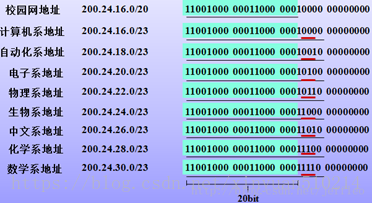 例如:一个校园网获得200.24.16.0/20的地址块,希望将它划分为8个等长的较小的地址块