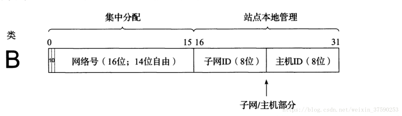 上面是一个B类地址被“划分子网”的例子。该地址的前16位被分配给核心机构,后16位由站点网络管理员分配。此例子中, 8位子网号,8位主机号,则站点支持256个子网,每个子网最多包含254台主机(每个子网的第一个和最后一个地址无效,即从整个分配范围中除去第一个和最后一个地址)。