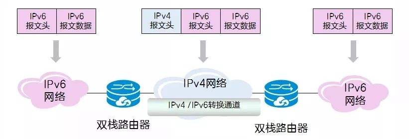 双栈技术、隧道技术、协议转换技术在IPv4向IPv6过渡期间互相配合、协同工作,解决了过渡期间的IPv4与IPv6的共存和互通问题,保障了IPv4向IPv6的平滑演进。