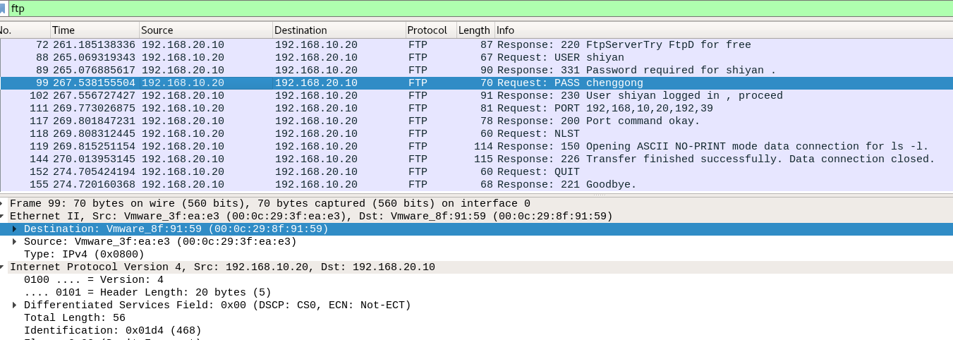 ftp 192.168.10.10 目的:测试与服务器之间的配置出错