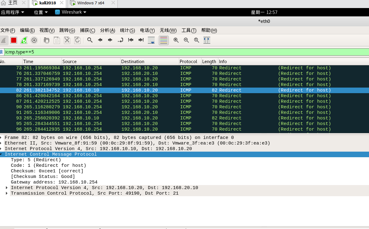 重定向攻击 源192.168.10.10 目标192.168.10.20