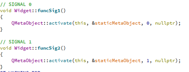 moc会将signals和slots下的函数名转换为字符数组.并生成一个名称idx索引号.
