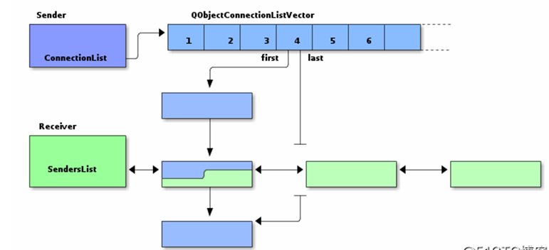 connect会将信号和槽函数字符串化, 然后执行connect的时候会判断信号槽参数是否一致.并遍历”信号槽”字符串的索引号.如果索引号都定义了,则在发送方的连接链表容器的信号索引处,添加一个目标对象指针和槽函数索引号的类到链表中.