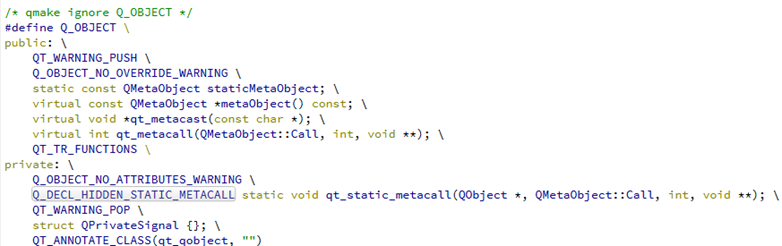 Q_OBJECT展开后,会有一个QMetaObject元对象静态类、还有一些元对象操作函数: